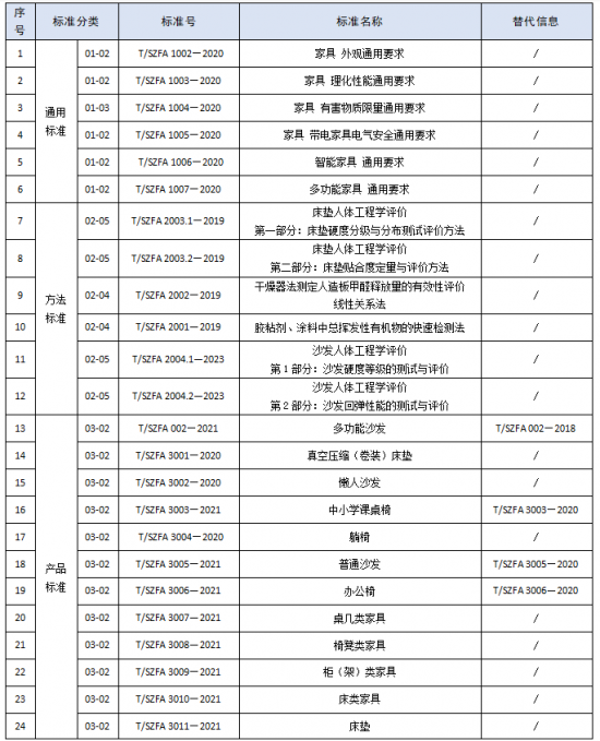 表1 SZFA團體標準清單(2024年9月版)