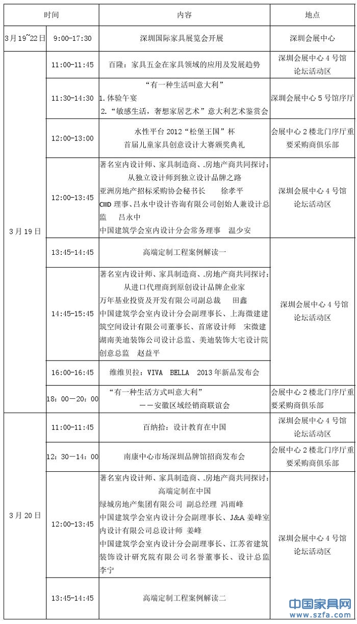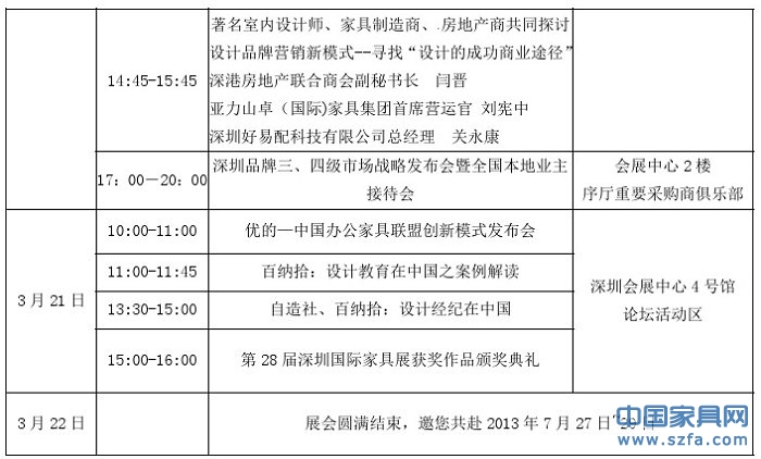 第28屆深圳國(guó)際家具展活動(dòng)日程表