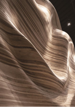 在去年的中國家具博覽會上,杜柏均使用美國紅橡和白橡打造了驚艷的全木制展廳,木材的可塑性被展現(xiàn)得淋漓盡致。