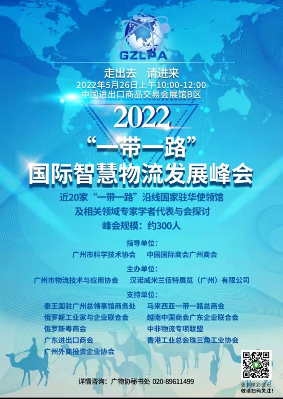 在成功舉辦兩屆峰會的基礎(chǔ)上,我協(xié)會將繼續(xù)攜手深入與20家以上“一帶一路”沿線國家駐穗總領(lǐng)事館和駐華使領(lǐng)館及各大商協(xié)會加強合作,定于2022年5月26日在中國進(jìn)出口商品交易會B區(qū)隆重舉辦2022第三屆“一帶一路”國際智慧物流發(fā)展峰會。本次峰會規(guī)模約300人,誠邀“一帶一路”沿線駐穗總領(lǐng)事館和駐華使領(lǐng)館以及對“一帶一路”有興趣的企業(yè)代表出席本屆峰會,并邀請“一帶一路”沿線國家相關(guān)企業(yè)物流倉儲負(fù)責(zé)人及代表共同參與,推動“一帶一路”物流技術(shù)與應(yīng)用的發(fā)展。