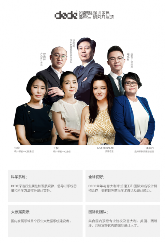 深圳家具研究開發(fā)院(DEDE)成立于2002 年,由國家公派意大利米蘭理工大學(xué)訪問學(xué)者、南京林業(yè)大學(xué)博士生導(dǎo)師許柏鳴教授親自帶隊(duì)組建。運(yùn)營以來,依托自身強(qiáng)大的平臺優(yōu)勢,集合了國內(nèi)外頂級專業(yè)機(jī)構(gòu)的優(yōu)秀人才和資源,通過對行業(yè)大數(shù)據(jù)的積累以及先進(jìn)知識體系的創(chuàng)建,成為了國內(nèi)首屈一指的家具產(chǎn)業(yè)戰(zhàn)略與實(shí)務(wù)設(shè)計機(jī)構(gòu)。DEDE 提供以頂層規(guī)劃為牽引的企業(yè)戰(zhàn)略設(shè)計,在此基礎(chǔ)上進(jìn)行家具產(chǎn)品研發(fā)、品牌形象策劃等系統(tǒng)性的設(shè)計服務(wù)。近年來,DEDE 致力于在產(chǎn)業(yè)上下游細(xì)分領(lǐng)域各打造一個標(biāo)桿品牌,以此推動中國家具產(chǎn)業(yè)的進(jìn)步。