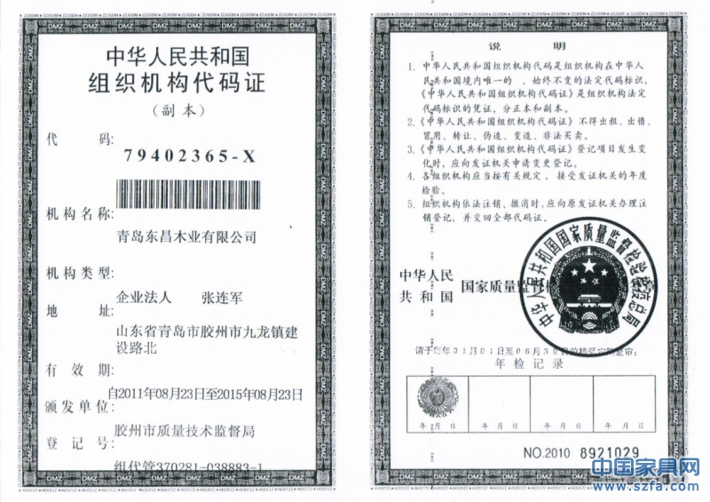 | 發(fā)證機(jī)構(gòu): | 中華人民共和國(guó)國(guó)家質(zhì)量監(jiān)督檢驗(yàn)檢疫總局 | 發(fā)證時(shí)間 : | 2011-08-23 |