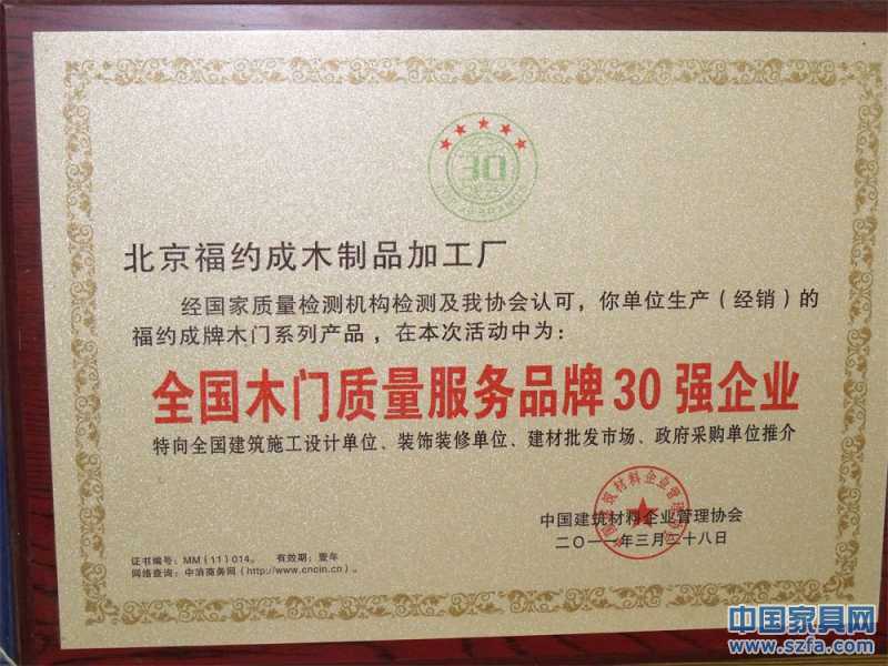 榮譽(yù)資質(zhì) 全國木門質(zhì)量服務(wù)品牌30強(qiáng)企業(yè)