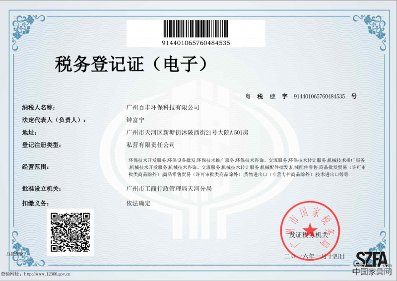 | 發(fā)證機(jī)構(gòu): | 廣州國家稅務(wù)局 | 發(fā)證時間 : | 2016-01-14 |
