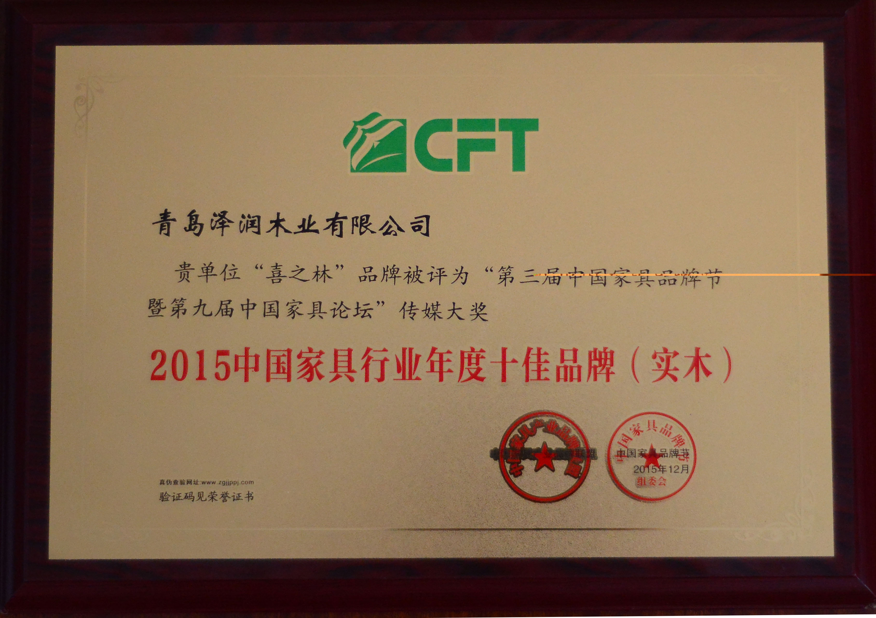 榮譽(yù)資質(zhì) 2015年中國(guó)家具行業(yè)年度十佳品牌(實(shí)木)