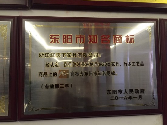 浙江紅天下家具有限公司被評為東陽市知名商標