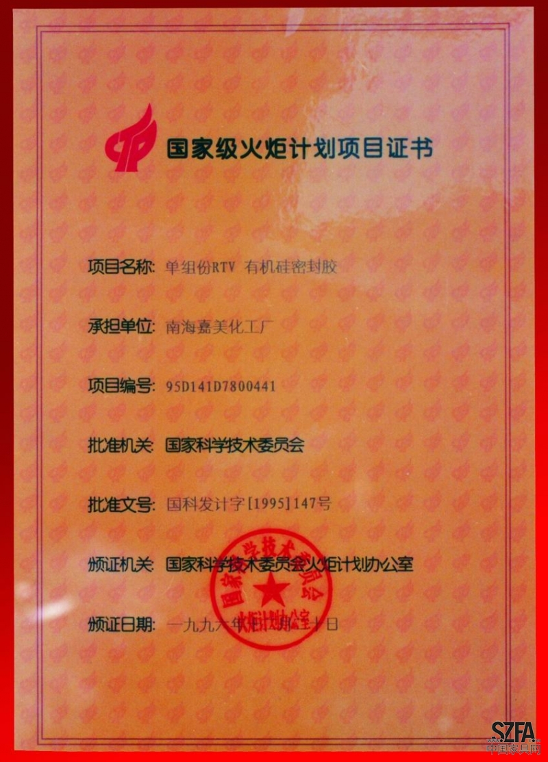 | 發(fā)證機(jī)構(gòu): | 國家科學(xué)技術(shù)委員會火炬計劃辦公室 | 發(fā)證時間 : | 1996-12-20 |