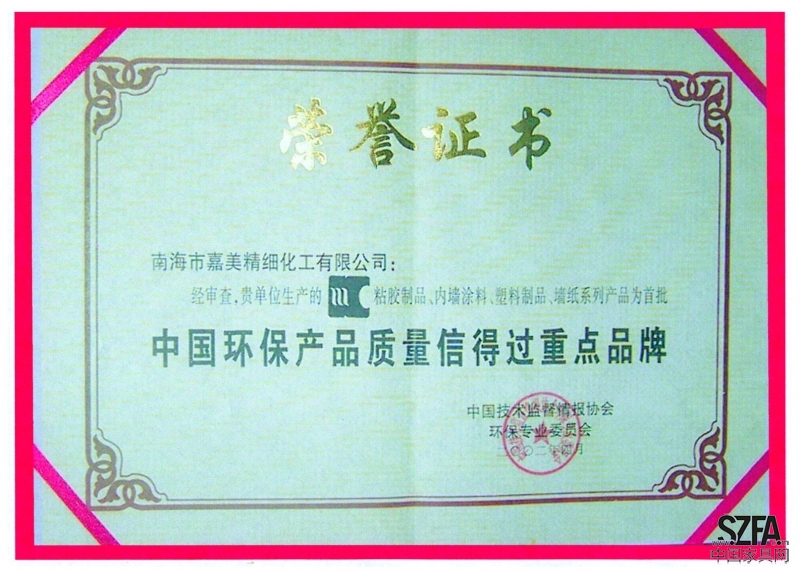 榮譽(yù)資質(zhì) 首批中國(guó)環(huán)保產(chǎn)品質(zhì)量信得過(guò)品牌