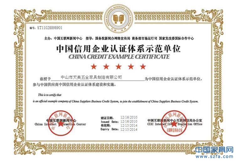 榮譽(yù)資質(zhì) 中國(guó)信用企業(yè)認(rèn)證