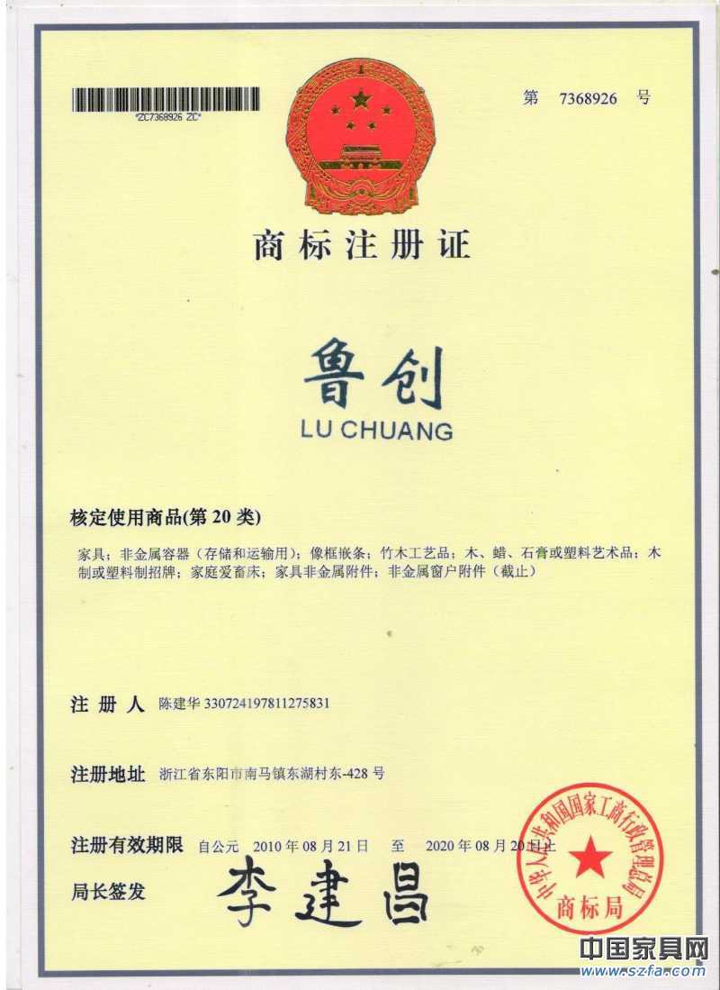 | 發(fā)證機(jī)構(gòu): | 商標(biāo)部 | 發(fā)證時(shí)間 : | 2010-08-21 |