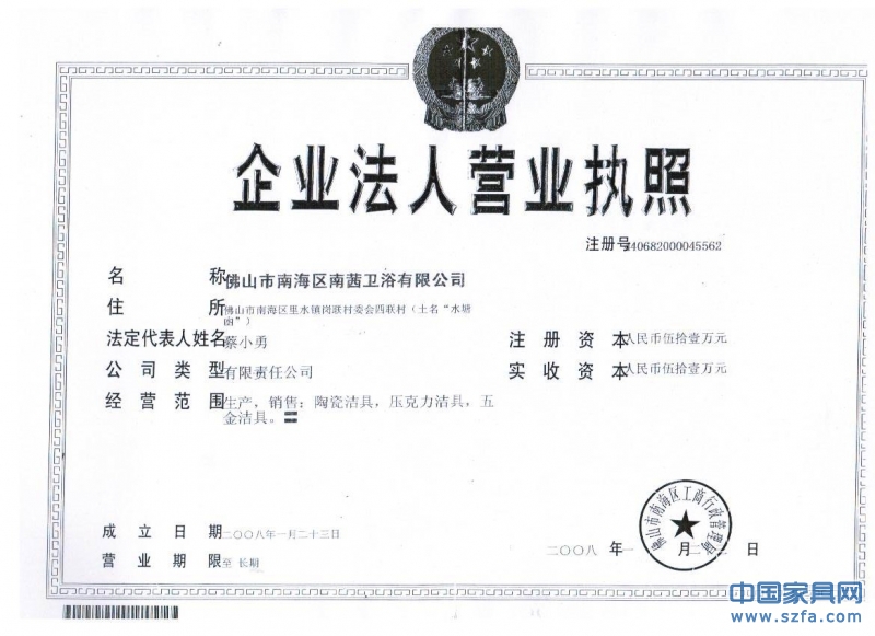 | 發(fā)證機(jī)構(gòu): | 佛山市南海區(qū)工商行政管理局 | 發(fā)證時(shí)間 : | 2008-01-23 |