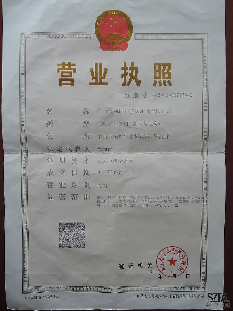 | 發(fā)證機(jī)構(gòu): | 工商局 | 發(fā)證時(shí)間 : | 2014-06-06 |