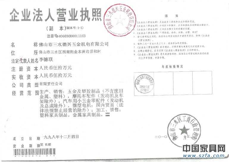 發(fā)證機(jī)構(gòu): 佛山市三水區(qū)工商行政管理局 證書圖片 |