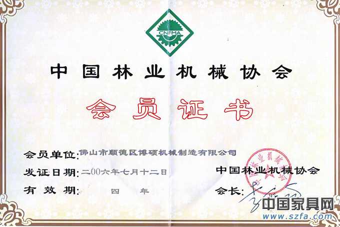 榮譽(yù)資質(zhì) 中國(guó)林業(yè)協(xié)會(huì)會(huì)員證書