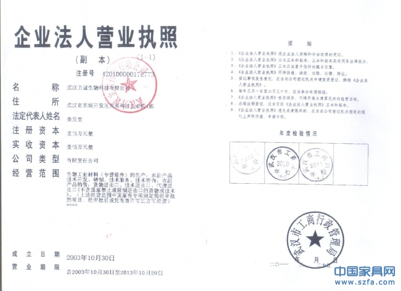 | 發(fā)證機(jī)構(gòu): | 武漢市工商行政管理局 | 發(fā)證時(shí)間 : | 2003-10-30 |