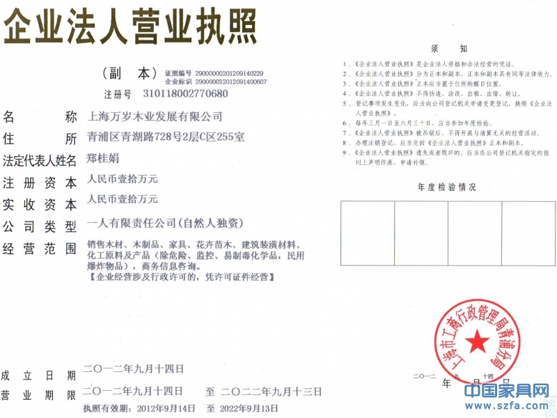 | 發(fā)證機(jī)構(gòu): | 上海工商局 | 發(fā)證時(shí)間 : | 2012-09-14 |
