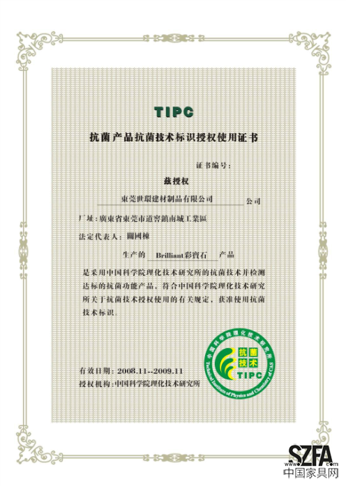首頁(yè) > 榮譽(yù)資質(zhì) > 抗菌證書(shū)