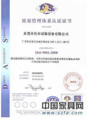 證書(shū)介紹 一、貝爾專(zhuān)業(yè)生產(chǎn)、銷(xiāo)售的產(chǎn)品主要有: 電池檢測(cè)設(shè)備:電池?cái)D壓試驗(yàn)機(jī)、電池針刺試驗(yàn)機(jī)、電池重物沖擊試驗(yàn)機(jī)、電池短路測(cè)試儀、電池燃燒顆粒試驗(yàn)裝置、電池?cái)D壓針刺一體機(jī)、自由跌落試驗(yàn)機(jī)、電磁振動(dòng)臺(tái)等。 環(huán)境檢測(cè)設(shè)備:恒定濕熱試驗(yàn)箱、高低溫交變?cè)囼?yàn)箱、鹽霧腐蝕試驗(yàn)箱、冷熱沖擊試驗(yàn)箱、恒溫恒濕室:紙箱抗壓強(qiáng)度試驗(yàn)機(jī),模擬汽車(chē)運(yùn)輸振動(dòng)臺(tái),包裝跌落試驗(yàn)機(jī),紙板環(huán)壓強(qiáng)度測(cè)定儀,紙板邊壓強(qiáng)度測(cè)定儀,紙板粘合強(qiáng)度測(cè)定儀、紙板耐破度測(cè)定儀等。 膠帶、塑膠檢測(cè)設(shè)備:膠帶剝離強(qiáng)度試驗(yàn)機(jī),膠帶持粘力測(cè)試儀,膠帶初粘性試驗(yàn)機(jī),烘箱型膠帶保持力試驗(yàn)機(jī),塑膠熔融指數(shù)儀等。 力學(xué)檢測(cè)設(shè)備:紙帶耐摩擦試驗(yàn)機(jī)、酒精耐摩擦試驗(yàn)機(jī)、油墨脫色試驗(yàn)機(jī)、搖擺試驗(yàn)機(jī)、按鍵壽命試驗(yàn)機(jī)等 二、發(fā)展歷史: 貝爾集團(tuán)成立于1998年,作為儀器設(shè)備領(lǐng)域的高科技公司,創(chuàng)業(yè)多年,集科、工、貿(mào)為一體,在香港設(shè)立貝爾實(shí)業(yè)(香港)有限公司,在中國(guó)大陸設(shè)立東莞市貝爾試驗(yàn)設(shè)備有限公司、東莞市環(huán)宇檢測(cè)儀器有限公司,并陸續(xù)在全國(guó)各大城市建立營(yíng)銷(xiāo)及售后服務(wù)網(wǎng)絡(luò)。 三、宗旨與導(dǎo)向: 貝爾一貫以“科技保證質(zhì)量,服務(wù)完善產(chǎn)品”為宗旨,以“服務(wù)第一,銷(xiāo)售第二;以誠(chéng)相待,共進(jìn)雙贏”為導(dǎo)向,具備完善的4S體系,銷(xiāo)售Sale、零配件Sparepart、售后服務(wù)Service、信息反饋Survey環(huán)環(huán)相扣。貝爾以其廣泛深厚的國(guó)際關(guān)系、強(qiáng)大的營(yíng)銷(xiāo)和售后服務(wù)力量、雄厚的技術(shù)實(shí)力,為您提供理想的研究、生產(chǎn)技術(shù)環(huán)境,產(chǎn)品廣泛應(yīng)用于電子、半導(dǎo)體、醫(yī)藥、化工、化妝品、涂料、石油、食品等行業(yè)及高校、檢驗(yàn)檢疫局、商檢、藥檢、軍科院、中科院等科研機(jī)構(gòu)。經(jīng)過(guò)多年的經(jīng)驗(yàn)積累,貝爾能夠?yàn)槟峁㊣T、半導(dǎo)體、醫(yī)藥、化工、食品等行業(yè)產(chǎn)品檢測(cè)及品質(zhì)管理的整體實(shí)驗(yàn)室解決方案和專(zhuān)業(yè)化服務(wù)。 四、經(jīng)營(yíng)理念: 今天的誠(chéng)信,明天的市場(chǎng),后天的利潤(rùn)。貝爾以客戶(hù)為尊,以質(zhì)量為本,為目標(biāo)市場(chǎng)提供一流的服務(wù),使客戶(hù)得到最大的增值效益,與客戶(hù)建立長(zhǎng)久、互信、雙贏的合作伙伴關(guān)系。 五、服務(wù)理念: 快捷、高效的服務(wù)為客戶(hù)徹底解除后顧之憂(yōu)。多年來(lái),貝爾在做好自身產(chǎn)品及代理產(chǎn)品的售后及維修工作外,為滿(mǎn)足客戶(hù)的要求,不斷地為客戶(hù)解決其它進(jìn)口品牌儀器的維修難題,在客戶(hù)中樹(shù)立了良好的形象。 六、產(chǎn)品應(yīng)用領(lǐng)域: 產(chǎn)品廣泛用于科研﹑航空﹑軍事﹑電子﹑電工﹑玩具、紙品、五金、電池、郵電通信等各種行業(yè)。公司依托自身的人才、技術(shù)、資金優(yōu)勢(shì),為科研、電工、電子、軍事、航空、船舶、郵電通信、汽車(chē)、摩托車(chē)等企事業(yè)單位提供符合GB、GJB、IEC、MIL、DIN等標(biāo)準(zhǔn)的各類(lèi)環(huán)境試驗(yàn)設(shè)備和力學(xué)試驗(yàn)設(shè)備 。 優(yōu)級(jí)的服務(wù) :免費(fèi)包裝送貨,免費(fèi)保修一年,終身服務(wù)并提供配件及易損件 證書(shū)圖片 |