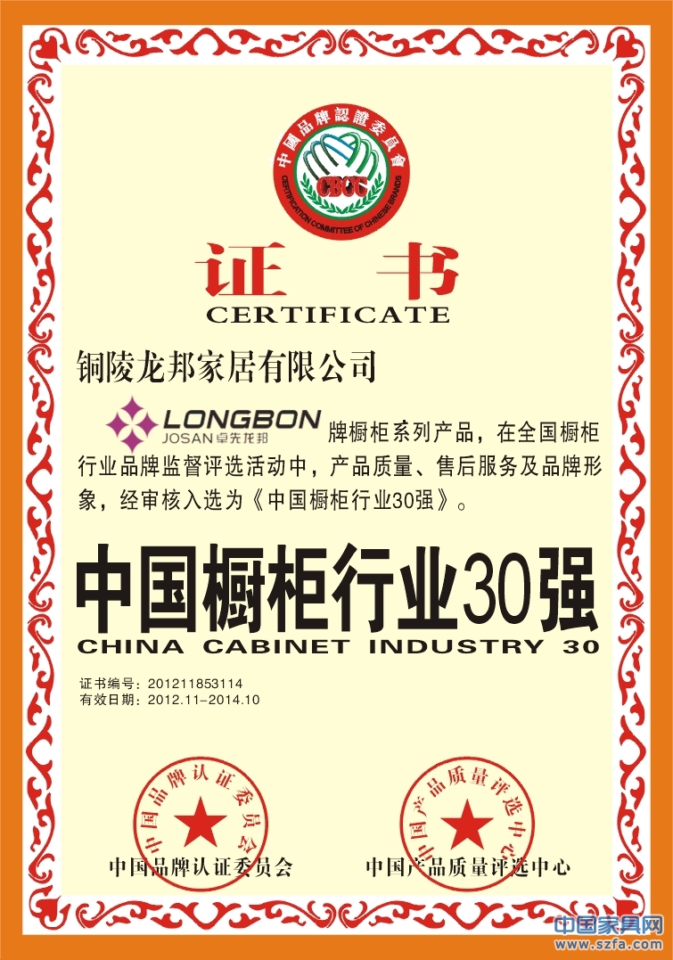 | 發(fā)證機(jī)構(gòu): | 中國(guó)品牌認(rèn)證委員會(huì) | 發(fā)證時(shí)間 : | 2012-11-08 |