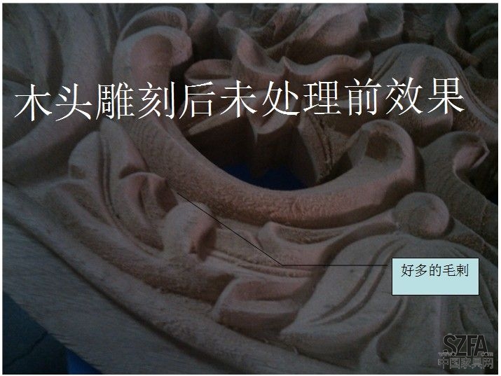 傳統(tǒng)木頭雕刻成型后,都使用砂紙、砂帶來處理毛剌。在處理的同時,不但效率低、邊角會受到損傷、凹處處理不到位、而且人工成本還非常大。讓企業(yè)老板頭痛。