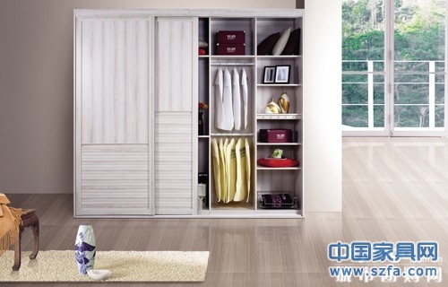 衣柜空間體積大,對(duì)于裝修風(fēng)格影響很大,應(yīng)與臥室整體風(fēng)格色調(diào)吻合互應(yīng),應(yīng)提前選擇整體衣柜的柜體顏色、衣柜推拉門的款式、門板顏色與欲選擇的地板、床架、床罩(單)、窗簾等家居品的顏色、樣式的協(xié)調(diào)。