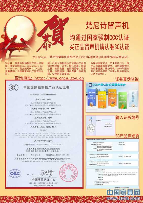 梵尼詩通過國家強制質(zhì)量認(rèn)證3C認(rèn)證,質(zhì)量升級,購買留聲機,留意廠家是否為無營業(yè)照,無稅務(wù)登記,無質(zhì)量認(rèn)證。梵尼詩,您信的過的品牌留聲機! ![]() |
