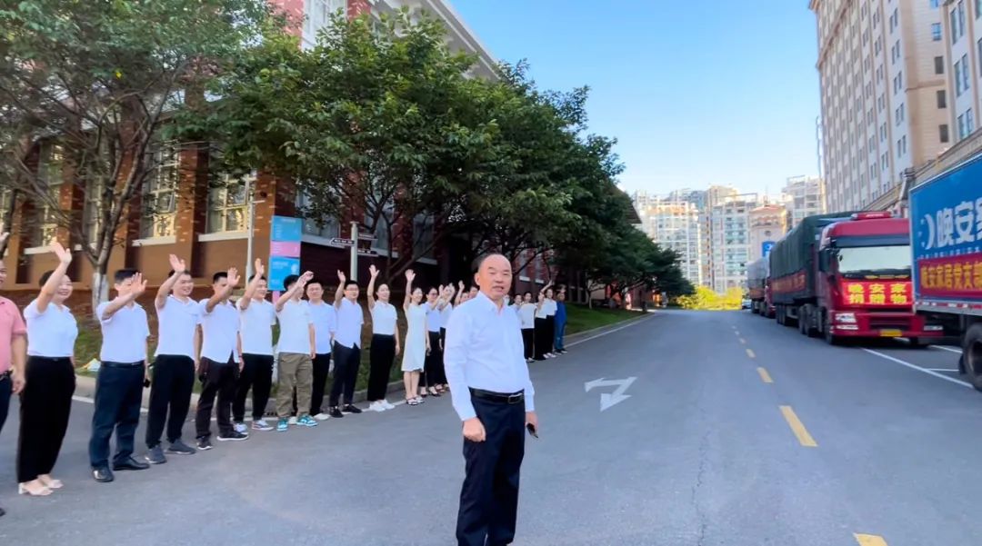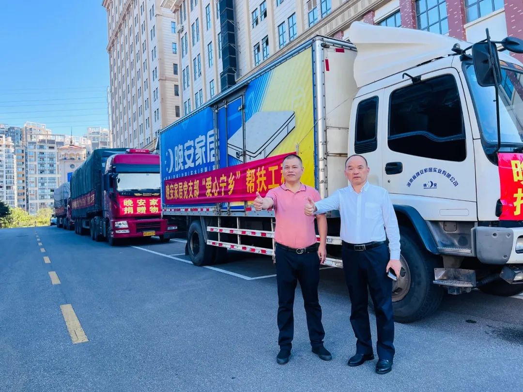當(dāng)天上午,晚安家居集團董事長曹澤云宣布“發(fā)車”,晚安紅木館、晚安家居集團品牌中心總經(jīng)理陳澤岑,晚安黨支部書記、集團運營管理中心總監(jiān)易輝及晚安家居黨支部全體黨員揮手送行愛心車隊,3輛大貨車同時發(fā)動,帶著晚安人的真情愛意直奔寧鄉(xiāng),傳播晚安大愛的溫暖與希望。