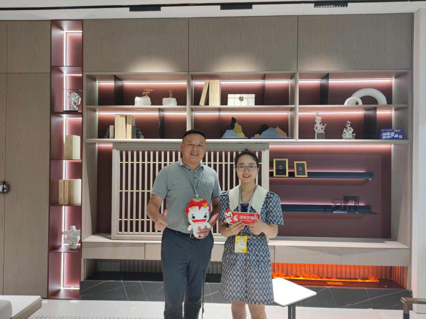 冠特定制董事長王軍太與中華衣柜網(wǎng)記者現(xiàn)場(chǎng)合影