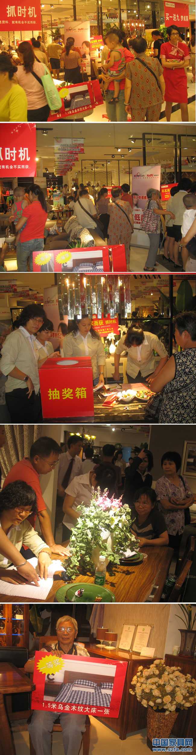 抽獎活動期間,幸福家居為了回饋客戶到時支持,還開放了限時搶購新品家具優(yōu)惠,十多款精品家具以超抵價即時搶購,其中,有一位顧客未等即時搶購新品拿出來,看到圖片就馬上說,我一定要這件產(chǎn)品,要求其他顧客不要和他搶,自己說是志在必得的,現(xiàn)場即時一陣歡笑,客戶的歡樂參與把品鑒會活動推向了高潮…….