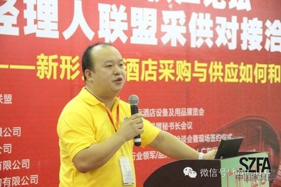 中國酒店采購經(jīng)理人聯(lián)盟秘書長、中國酒店采購報社長胡登新在現(xiàn)場介紹了中國酒店采購經(jīng)理人聯(lián)盟以及聯(lián)盟推薦供應(yīng)商合作細(xì)則。胡登新說,“采供對接、分享共贏”是中國酒店采購經(jīng)理人聯(lián)盟的商業(yè)準(zhǔn)則。 “聯(lián)盟除了為會員服務(wù),提高他們的采購效率,也會吸引優(yōu)質(zhì)的酒店用品供應(yīng)商加入聯(lián)盟,通過降低供應(yīng)商開發(fā)酒店業(yè)務(wù)的商務(wù)成本,實現(xiàn)供應(yīng)商的規(guī)模效應(yīng),使供應(yīng)商通過聯(lián)盟這個穩(wěn)定、集中的供貨平臺為聯(lián)盟成員酒店服務(wù)。” 胡登新還現(xiàn)場介紹了聯(lián)盟推薦供應(yīng)商和金牌供應(yīng)商的入選條件。