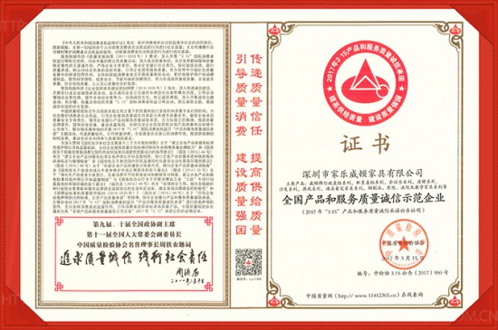 在本次“產(chǎn)品和服務(wù)質(zhì)量誠信承諾”的主題活動(dòng)評(píng)比中,深圳家樂威頓家具有限公司在近2000家參與的企業(yè)中,積極踐行產(chǎn)品和服務(wù)質(zhì)量誠信承諾,讓廣大消費(fèi)者分享更多的質(zhì)量紅利,倡導(dǎo)提高供給質(zhì)量,推動(dòng)質(zhì)量社會(huì)共治。
