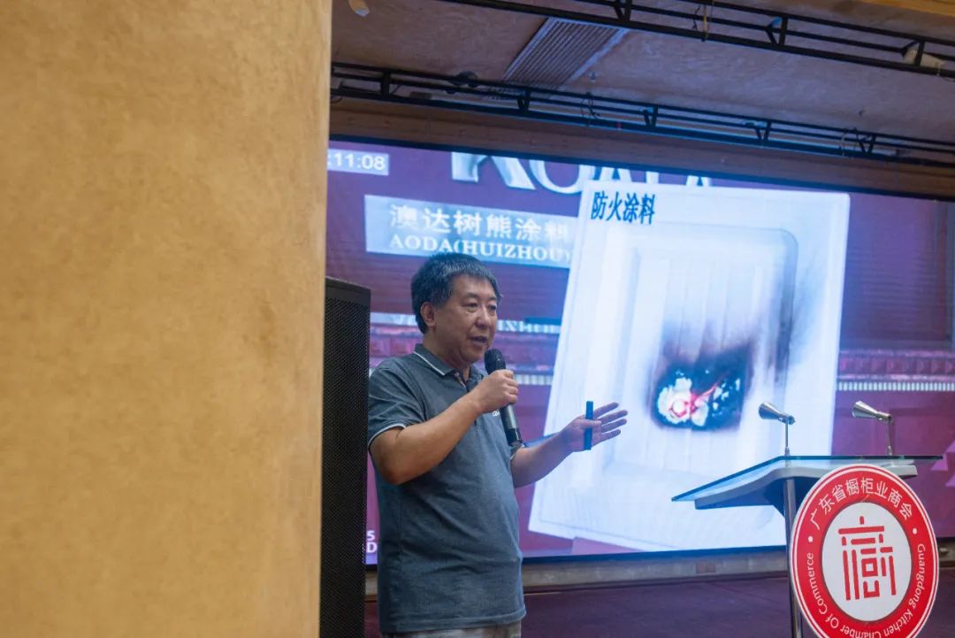 當(dāng)前,家居行業(yè)大量地使用了木材,精美的木材制品給消費(fèi)者帶來(lái)尊貴感受的同時(shí),也凸顯了木材的易燃等問(wèn)題。為此,在理事會(huì)議上,我司隆重推出業(yè)內(nèi)獨(dú)一無(wú)二的最新研發(fā)成果——PMR敏捷高效膨脹型裝飾木器防火漆。深圳市澳達(dá)思偉氏新材料科技有限公司李兵先生,現(xiàn)場(chǎng)為大家分享了PMR防火木器漆,并剖析了木材燃燒的全過(guò)程,通過(guò)PMR防火木器漆與傳統(tǒng)飾面型防火涂料的性能對(duì)比,讓大家更加清晰的認(rèn)知木質(zhì)家具企業(yè)更應(yīng)積極保護(hù)木材、維護(hù)使用者的安全。