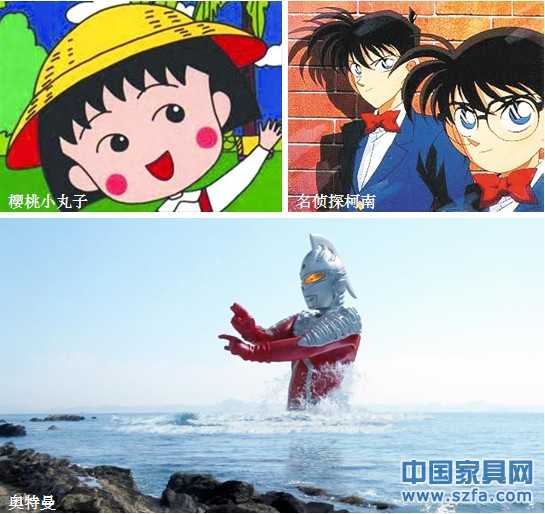 眾所周知,櫻桃小丸子、名偵探柯南、奧特曼這三大家喻戶曉的動漫形象,目前在飲食、餐具、飾品等其他領域都占有一定的市場,在國際上也極具影響力和號召力。《櫻桃小丸子》是日本最長壽的漫畫作品,自1986年連載至今已超過25年,足足影響兩代甚至三代人?!睹麄商娇履稀纷?994年開始連載,迄今已有18年,連載超過750集,漫畫及相關圖書累計發(fā)行突破1億3千萬冊,成為《周刊少年SUNDAY》的代表作品。“奧特曼”系列是由日本圓谷制作株式會社自1966年開始制作的特攝電視作品,時至今日其作品已近40部,在亞洲乃至全世界享有極高人氣,是廣大少年兒童心目中的偶像,同時也擁有一大批忠實的成年粉絲。