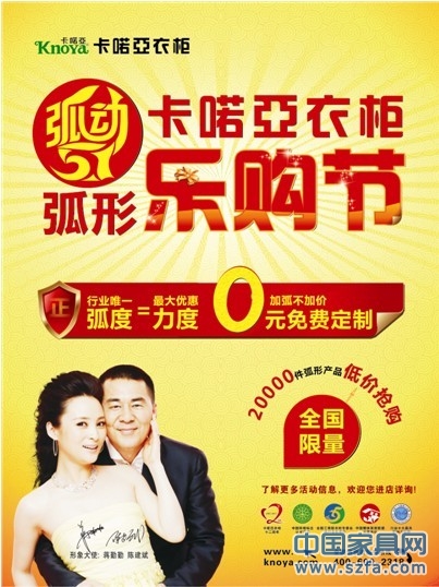 卡喏亞衣柜弧形樂購(gòu)節(jié)來(lái)了!好衣柜攜手陳建斌、蔣勤勤夫婦舉辦“弧動(dòng)五一”樂購(gòu)盛會(huì),讓家具弧動(dòng)起來(lái)!150度弧線設(shè)計(jì),行業(yè)唯一弧度,最潮最先進(jìn),別家都沒有!在樂購(gòu)節(jié)期間,卡喏亞以最大的優(yōu)惠力度感恩全國(guó)億萬(wàn)消費(fèi)者!20000件弧形產(chǎn)品低價(jià)搶購(gòu),全國(guó)限量,錯(cuò)過就是遺憾!還有加弧不加價(jià),0元免費(fèi)定制等震撼巨惠,不參與就遺憾!讓我們一起弧動(dòng)五一,High翻整個(gè)五月!