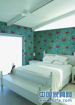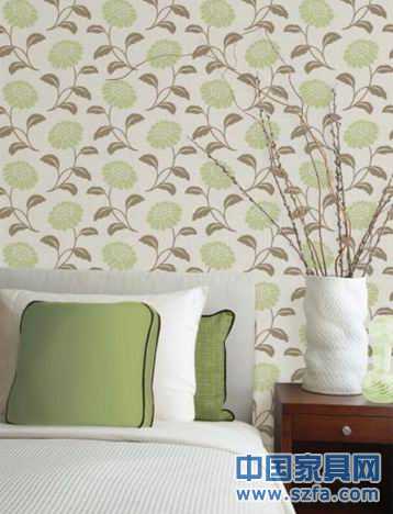 純凈的臥室搭配素凈的綠花 墻紙 ,使整個臥室更顯素雅!