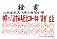 黎明家具于2002年通過了ISO9001:2008質(zhì)量管理體系認(rèn)證,2003年通過了ISO14001:2004環(huán)境管理體系認(rèn)證,2005年公司資信等級評為AAA級,2007年通過了中國環(huán)境標(biāo)志產(chǎn)品認(rèn)證證書,2009年通過了職業(yè)健康安全管理體系認(rèn)證證書。十幾年來,黎明家具及其產(chǎn)品屢獲殊榮,自2000年起年年被北京市工商局公示為守信企業(yè),是“中國著名品牌”重點推廣單位。2005年被確定為中央國家機(jī)關(guān)政府采購定點供應(yīng)商。黎明家具為中共中央辦公廳、國家廣電總局、北京市人民政府等黨政機(jī)關(guān),為中科院、中國航天科技集團(tuán)、清華大學(xué)等科研單位,為聯(lián)想集團(tuán)、大唐電信、中國石化工程公司、建設(shè)銀行北京市分行等大型企業(yè)提供了各類家具及配套服務(wù),并受到社會一致好評。