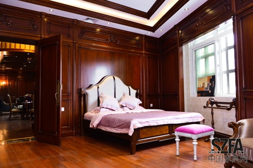 古香古色的衣柜、書櫥、墻板、木門及高靠背大床,甚至燈具,都是做舊復(fù)古的寫意,讓人不禁追思久遠(yuǎn)的情愁,仿佛穿越時(shí)光隧道,遁回上世紀(jì)歐洲的貴族人家。