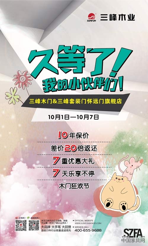 三峰木門、三峰套裝門旗艦店再次聯(lián)手裸價(jià)戰(zhàn)沈城。三峰工廠十一裸價(jià)直供,全場(chǎng)門款十年保價(jià)!買貴20倍找差價(jià)!360度無憂星級(jí)服務(wù),十一情動(dòng)升級(jí),十年超長(zhǎng)質(zhì)保期讓您買的省錢用的省心!