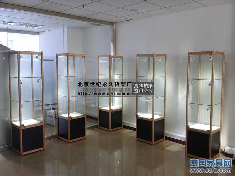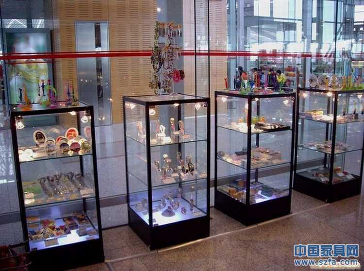 展示柜主要有托架、支架、吊架、格架等幾種形式,可以采用金屬、木材、塑料、玻璃、柱制品、有機(jī)玻璃及一些合成材料。
