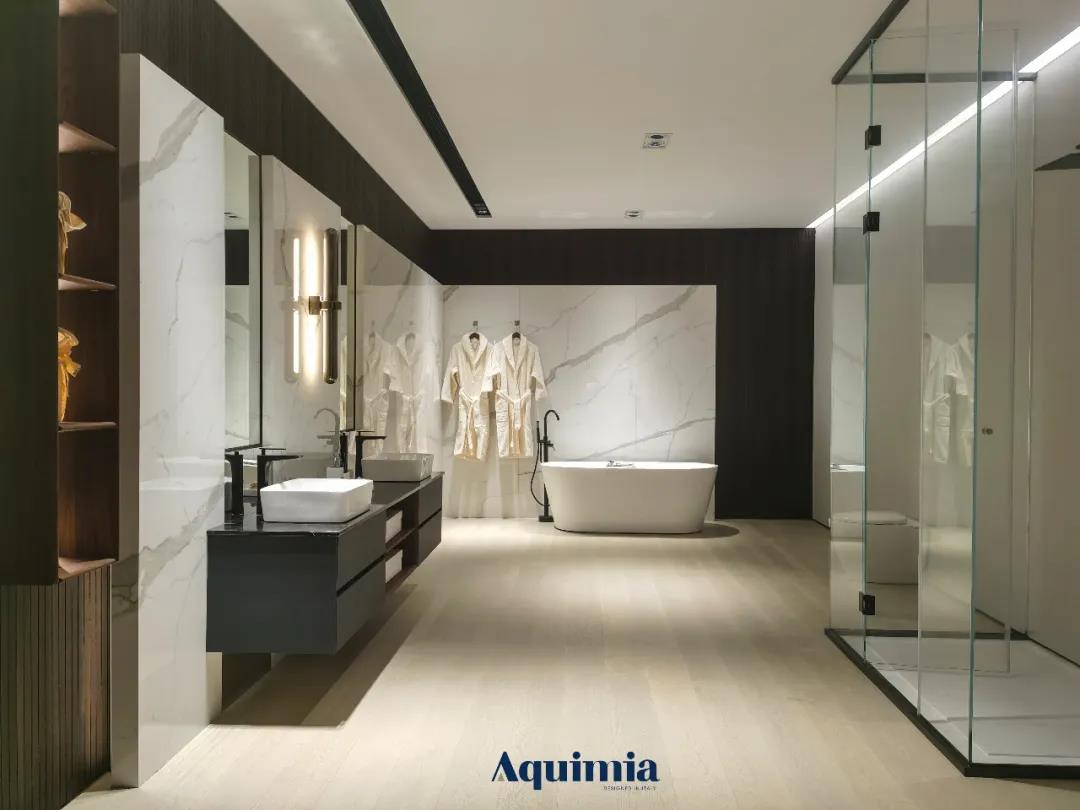 在時代脊梁之上,在意式優(yōu)雅文化的加持之下,在設計之初,AQUIMIA便將對功能性的深究納入環(huán)節(jié)之中,考慮設計創(chuàng)作所要表達的內容和意義,帶來一種兼顧美學和實用性的藝術方式,將其覆蓋家中的每個角落,完美迎合不同空間布局和用戶需求,在協(xié)調比例與優(yōu)美造型中取得巧妙平衡。在AQUIMIA中國展廳,隨處可以感受到細膩的木飾面板,獨特的金屬及石材臺面,將極簡幾何和時尚紋理構造,精打細磨直至最終成型,通過連貫一致的設計、現代感十足的風格展現出強大的生命力。