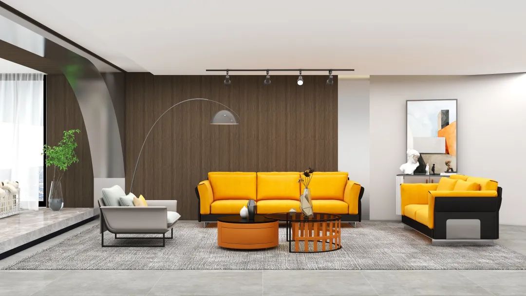 當(dāng)然,在使用互補(bǔ)色時(shí)可以用無(wú)色系背景進(jìn)行襯托,這樣的配色方案可以讓空間充滿年輕活力,但整體用色不要超過(guò)三個(gè)色系,避免雜亂,產(chǎn)生空間割裂感。