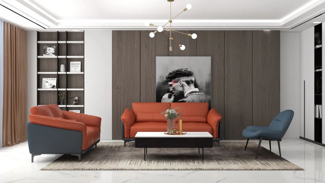 對(duì)比色注重形成空間的色彩對(duì)比與冷暖對(duì)比,打造一種更加和諧的氛圍感。暖色如紅橙黃等色,是溫暖色的代表,但同時(shí)也是一種興奮色,需要加入冷色調(diào)進(jìn)行緩沖,讓氛圍顯得更為輕松。