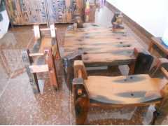 老船木經(jīng)過海水的上百年浸蝕與洗滌,在烈日與暴風(fēng)雨中航行千萬里,歷經(jīng)海水、河水、溪水的打磨與鍛煉形成的。其木質(zhì)堅(jiān)實(shí),高密度,高硬度,顏色深沉,紅黑老黃相加呈現(xiàn)天然韻味。經(jīng)過打磨的船木擁有光滑的表面不打蠟而具打蠟效果。更加神奇的是老船木能夠防火、防水、防蟲、防腐,是當(dāng)今倡導(dǎo)綠色健康、環(huán)保、原生態(tài)永恒的主題,所以老船木是做家具的上好材料。令家具行業(yè)備加推崇,因此老船木家具也十分搶手。