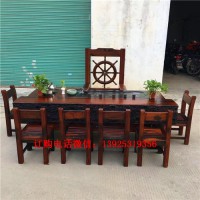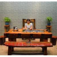老船木茶桌椅組合簡(jiǎn)約休閑古典泡茶桌椅流水茶臺(tái)博古架
