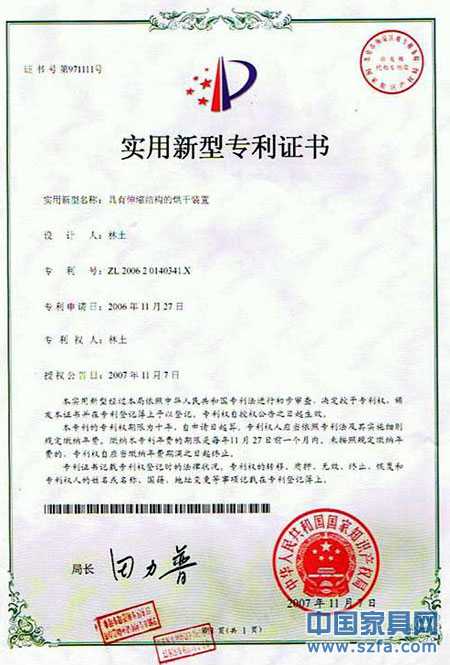 伸縮烘干專利證書:(具有伸縮結(jié)構(gòu)的烘干裝置)