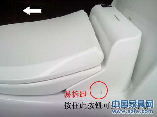 如果要拉出潔身器請如下圖按住潔身器左側(cè)的按鈕后向前拉出