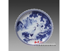 景德鎮(zhèn)陶瓷廠家生產(chǎn)供應(yīng)陶瓷大瓷盤,開業(yè)禮品陶瓷大瓷盤,喬遷禮品陶瓷大瓷盤,商務(wù)禮品陶瓷大瓷盤,手繪青花陶瓷大瓷盤,手繪粉彩陶瓷大瓷盤,裝飾品陶瓷大瓷盤,景德鎮(zhèn)高檔陶瓷大瓷盤、賞盤、看盤、擺盤、掛盤。景德鎮(zhèn)陶瓷瓷廠生產(chǎn)的陶瓷大瓷盤適用于商務(wù)辦公場合、酒店大堂裝飾、酒店餐廳巨型器皿、大堂隔間屏風(fēng)、工地竣工紀(jì)念、名人肖像館紀(jì)念等。景德鎮(zhèn)大瓷盤常規(guī)規(guī)格在1米-1.5米,畫面有蟲魚鳥獸,梅蘭竹菊,蓮花,植物,樓閣,牡丹,龍紋,庭院國畫等。由于大瓷盤直徑太大,通過模具制作是根本不可行的。因此制作這款陶瓷大瓷盤從泥胚的制作開始都是人工手工拉坯、修坯,待泥坯干燥后,用特殊的陶瓷顏料將精選的畫面手繪到瓷盤上面。大瓷盤的燒制是經(jīng)過1300攝制度的高溫?zé)贫?,這一特性是的我們的陶瓷大瓷盤畫面可永久保存、永不退染色。