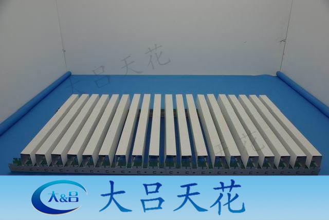 4、將鋁方通、木紋鋁方通系列按順序扣掛在龍骨上,再將倒鎖片壓下,方通端頭應(yīng)保持10mm或20mm的距離。