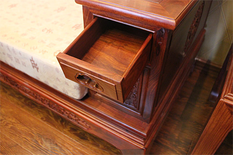 5、選用一級(jí)正宗紅木木材制作,一木拼接,色澤更均勻。