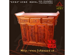 以沉年香樟為材料,木工按古典家具全榫卯結(jié)構(gòu)古做法,結(jié)合工藝品的手工精雕細(xì)磨,香樟木佛龕防蟲防蛀,百年不朽